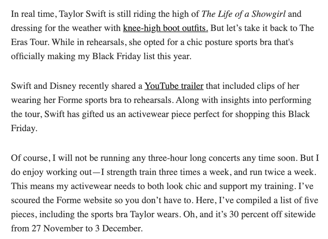 Writing and creating compelling long-form articles with brand sponsorship, including beauty and activewear brands. Delivered exceptional written work designed to bring clicks & engagement over the Black Friday 2025 period.